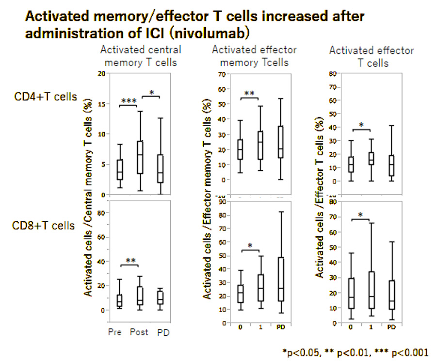 Several tumor-related factors have been reported as predictors of ICI efficacy, including PD-L1 expression in tumor tissues, deficiency in DNA mismatch repair (MMR) and microsatellite instability (MSI), as well as tumor mutational burden (TMB). However, no established biomarkers have been identified among host (immune system) factors. Moreover, the effects of ICI therapy on immune cells other than T cells within the tumor microenvironment, as well as the subsequent systemic immune responses, remain insufficiently elucidated.